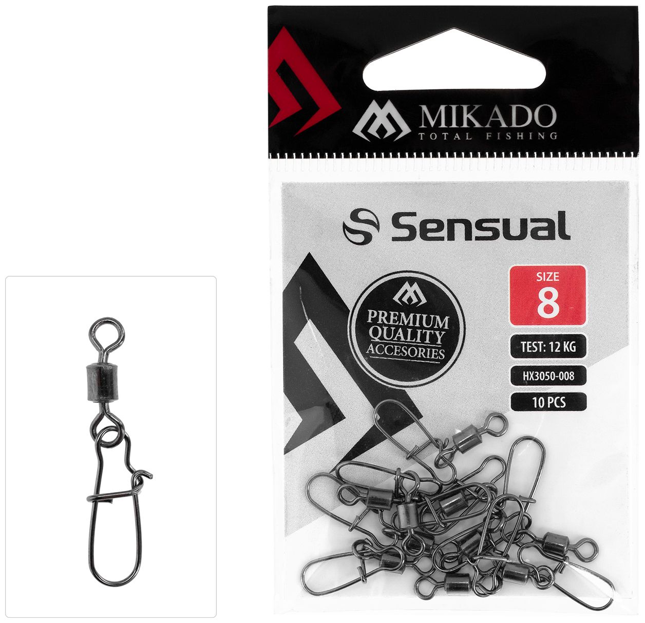 Karabina s okretnim spojem Mikado Fastlock Rolling u izvedbi crni nikal (BN). Nosivost 9–18 kg. Pakiranje sadrži 10 kom.
