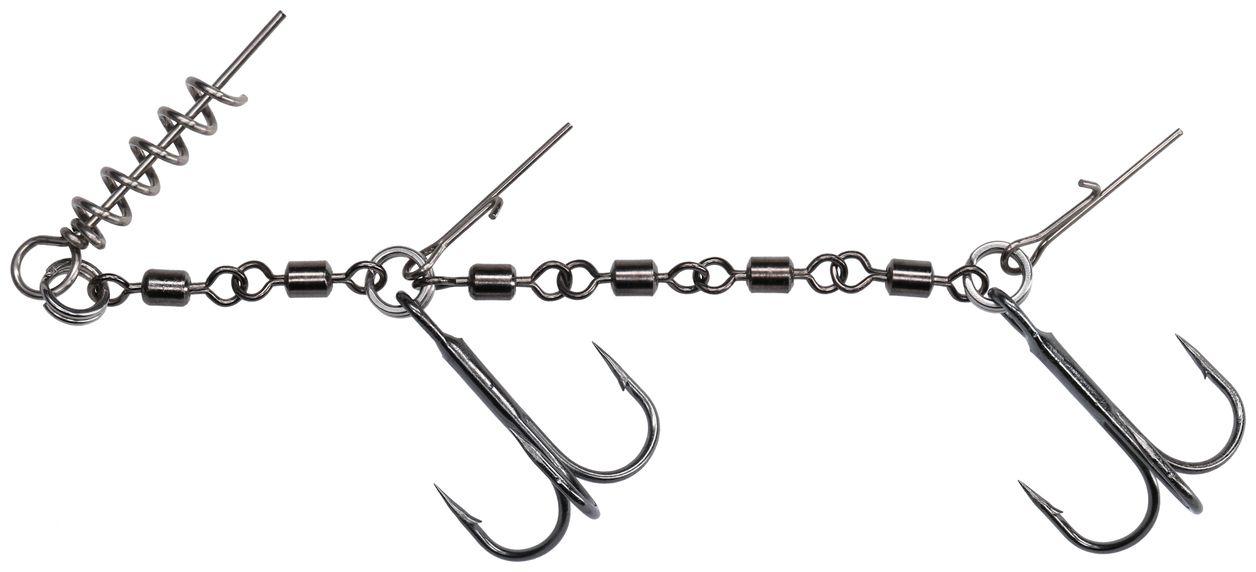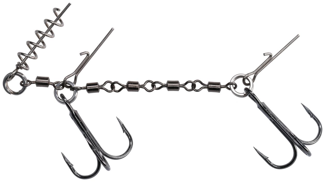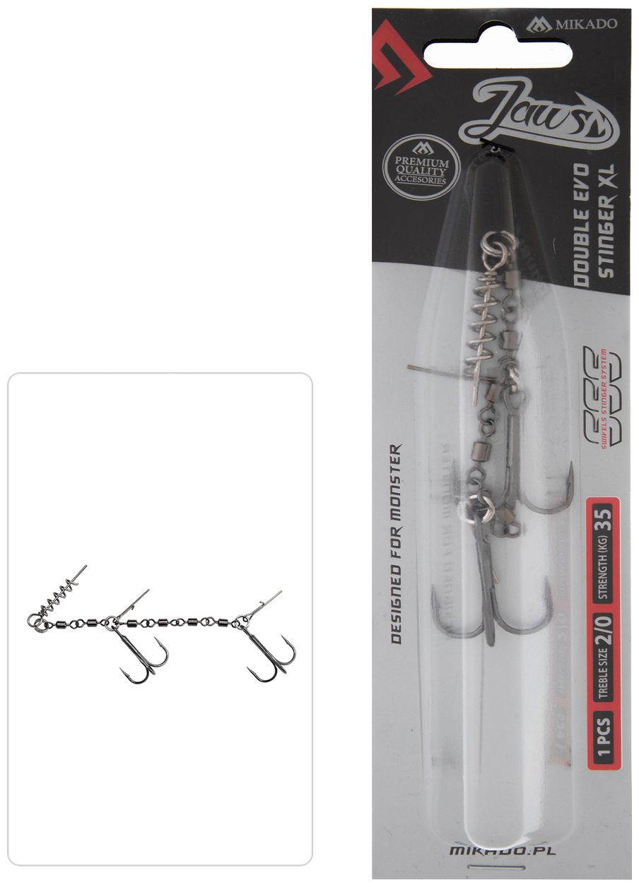 Dvostruki stinger s zavrtavačem i iglama namijenjen je za lov s većim mamcima. Konstrukcija sadrži nekoliko okretnih elemenata koji osiguravaju vrlo čvrstu vezu, praktički eliminirajući pojavu neočekivane poluge tijekom borbe i istovremeno stabilizirajući mamac. Korištenje nekoliko okretnih elemenata pruža vrlo čvrstu vezu koja praktički eliminira potencijalnu pojavu neočekivane poluge tijekom borbe i istovremeno stabilizira mamac.