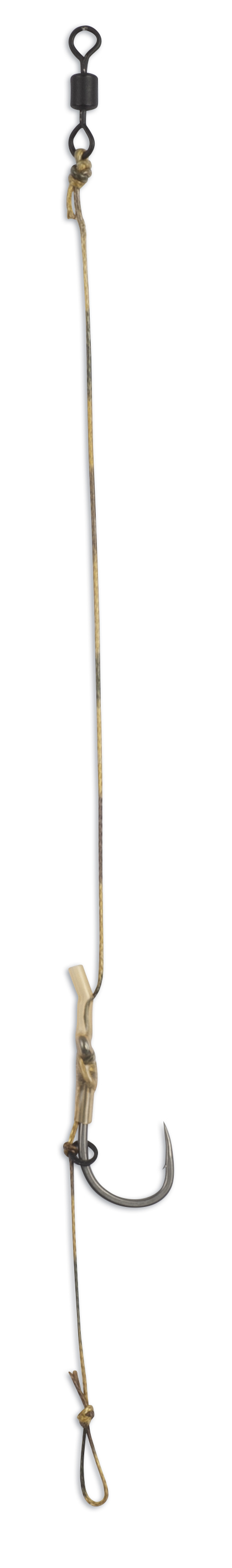 Uhvati za lov šarana, koji je napravljen od potpuno obloženog tvrđeg pletenog konopca i prstena na udici, tzv. Chog Rig montaža.