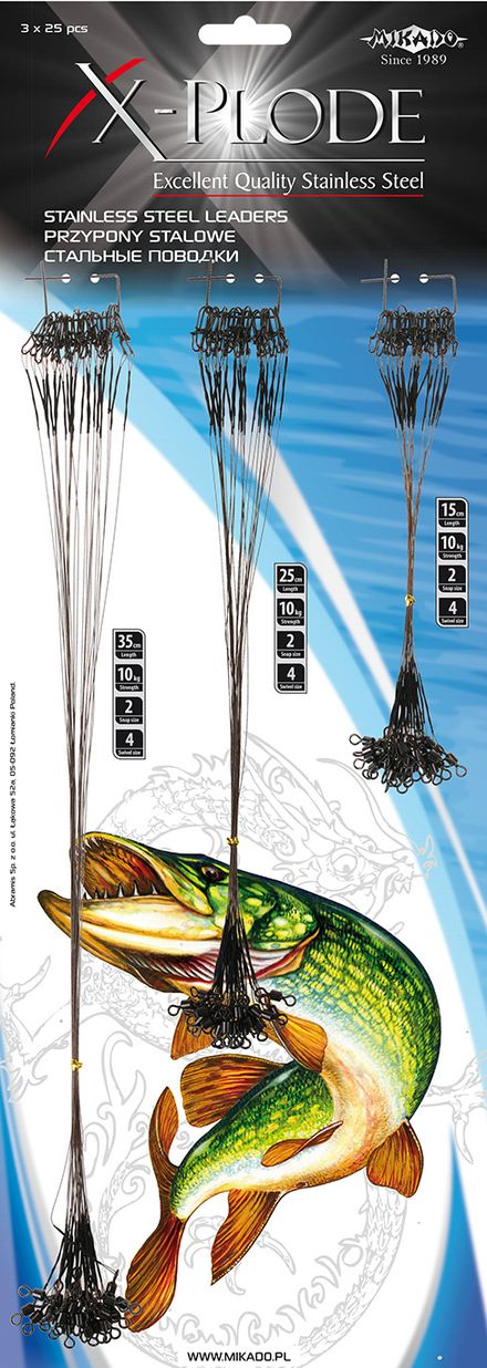 Čelična žica s kuglastim vrtilom (FS) marke Mikado deo je serije X-Plode, koja predstavlja širok spektar različitih modela, od popularnih do specijalizovanih sistema opremljenih udicama ili trokrakim udicama. Ovaj model se sastoji od izdržljive čelične žice sa pouzdanim kuglastim vrtilom u zelenoj boji.