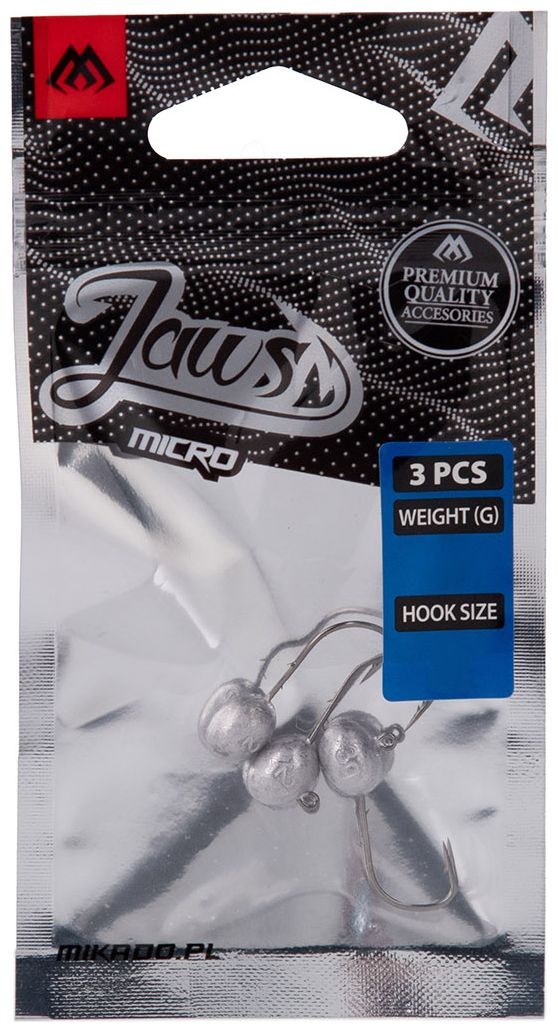 Serija finih jig glava Mikado Jaws Micro namijenjena je za ribolov s najmanjim i najfinijim mamcima. Ove glave su dizajnirane kako bi pružale visoku učinkovitost čak i pri upotrebi mini mamaca - kombiniraju kvalitetno tijelo s ekstremno jakim i oštrim udicama.