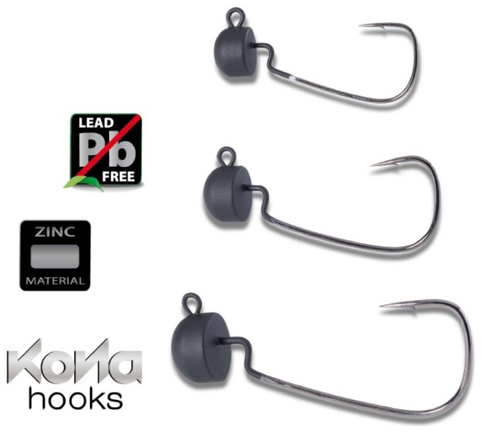 Specijalna jig glava s offset udicom, dizajnirana za ribolov s plutajućim mamcima. Zbog oblika glave, mamac prirodno leži na dnu, što osigurava realističnu prezentaciju. Izrađena od cinka bez olova u mat crnoj boji. Opremljena kvalitetnom offset udicom Kona L40801 Straight Gap.