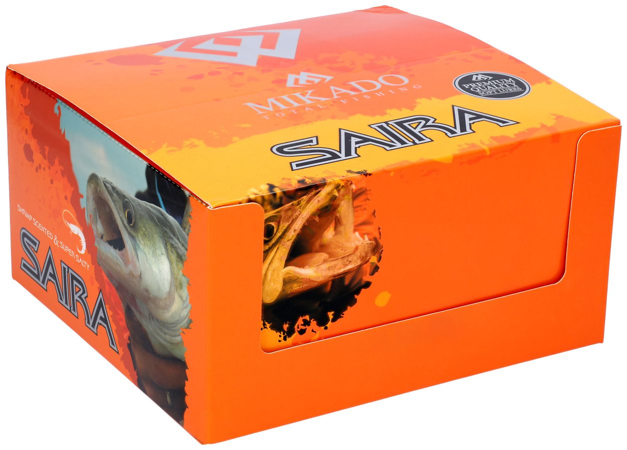 Inovativna gumena mamac SAIRA „smáček“ od Mikado, namijenjena prvenstveno za vertikalni ribolov. Vrlo realistična imitacija male ribice, pogodna za lov pastrva, smuđa, štuka i soma. Mamac također funkcionira u drop-shot montaži i može se voditi na jig glavici, čeburašci ili opremiti dvostrukim udicama MIKADO.