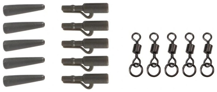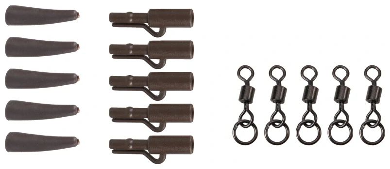 Praktični set sigurnosnih klipova, koji sadrži sve potrebne komponente za sigurno i pouzdano pričvršćivanje olova na čvrste montaže. Sigurnosni klipovi za olovo prikladni su za većinu čvrstih montaža s olovom. Zajedno s prevlakom i vrtilicom pouzdano fiksiraju olovo. U slučaju lomljenja ribolovnog konca ili udarca u prepreku, omogućuju šaranu lagano oslobađanje od olova. U proširenoj verziji set dodatno sadrži PVC cijev protiv zapetljavanja, koja minimalizira rizik od zapetljavanja prilikom bacanja i održava montažu na dnu.
