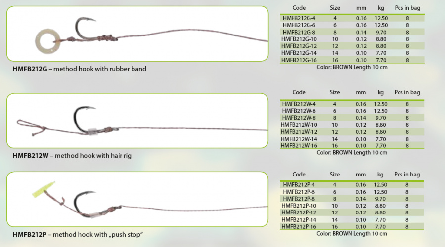 Kompletni predveze za Method feeder. Verzija - s ribolovnim vlaknom, udicama s protivrakom, u raznim verzijama učvršćivanja mamca.