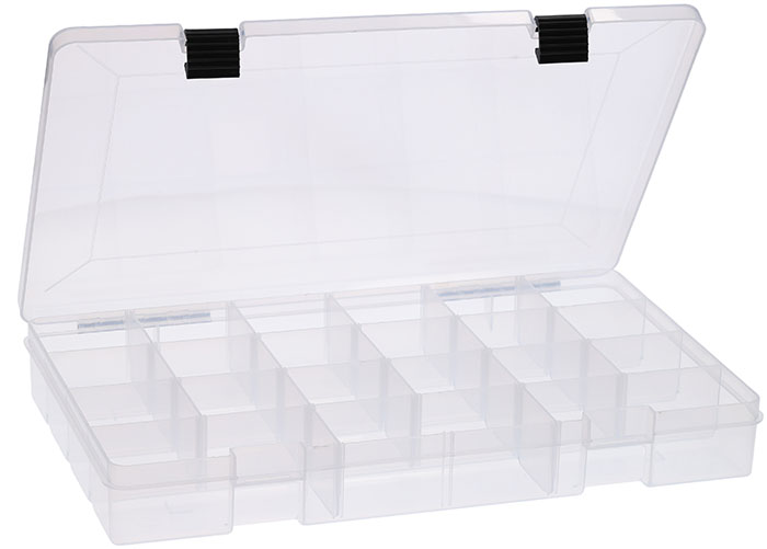 Torba s kutijama, trakom za ruku i ručkom, podijeljena na dvije glavne komore. Gornji dio savršeno služi za pohranu većih stvari, dok je donji dio opremljen kutijama namijenjen za pohranu pribora i mamaca.