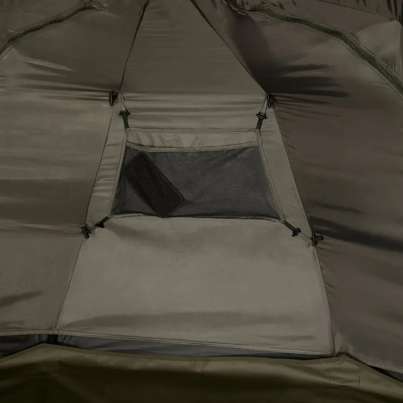 Brolly je opremljen stražnjim ventilacijskim panelom, dva prednja ventilacijska otvora i parozidom protiv kondenzacije, dok unutarnje torbe, držači štapova i varijabilna vrata (PVC, mrežica ili puni panel) osiguravaju maksimalnu udobnost i preglednu organizaciju opreme.