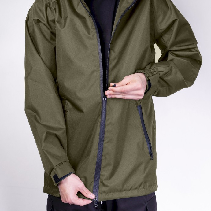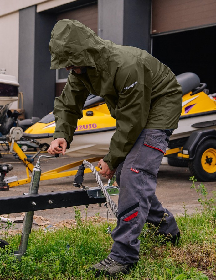 Moderna jakna koja dobro odgovara teškim vremenskim uvjetima. Zahvaljujući upotrebi laganog, prozračnog materijala aQuaAir, ovaj proizvod će cijeniti i najzahtjevniji korisnici. Bolju zaštitu od vode osiguravaju vodonepropusni zipovi na zatvaranju i u otvorima džepova, kao i manžetni na rukavima. Glavu od kiše i vjetra štiti kapuljača sa širokim obrubom, stegnuta gumicom i blokadama. Cjelinu upotpunjava praktična podešavajuća traka na donjem dijelu jakne.