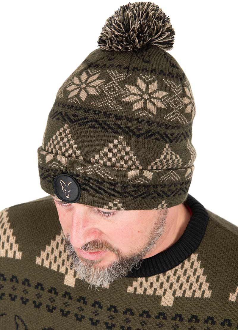 - Fox pletena kapa s pomponom s božićnim uzorkom
