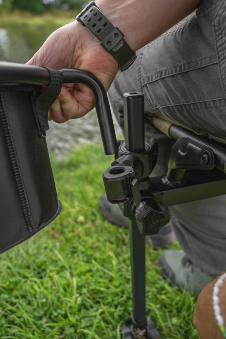 Any Chair sustav stvara od Vašeeg naslonjača zaista multifunkcionalno sjedište. Jednostavno otvorite zglob kako bi se uklopio na nogu naslonjača i upotrijebite priloženi umetak, kako bi točno odgovarao. Za savršeno podešavanje možete prilagoditi kut pomoću zgloba i ručnih vijaka. Dostupno s umetcima za noge naslonjača 23mm okrugle, 25mm okrugle i 23mm kvadratne. Također se uklapa na naslonjače Korum X25 i S23.