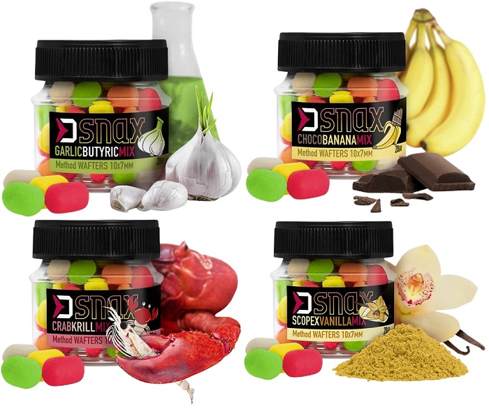 D SNAX WAFT se proizvode u obliku valjka dimenzija 10x7mm, u atraktivnim kombinacijama boja i u provjerenim okusima koji ribe zasigurno neće ostaviti ravnodušnima.