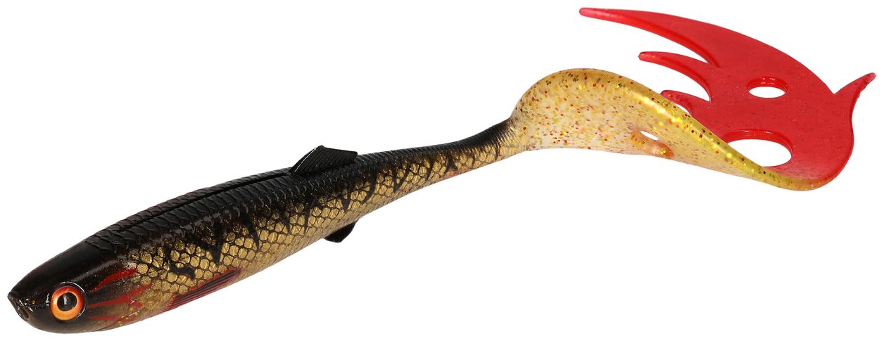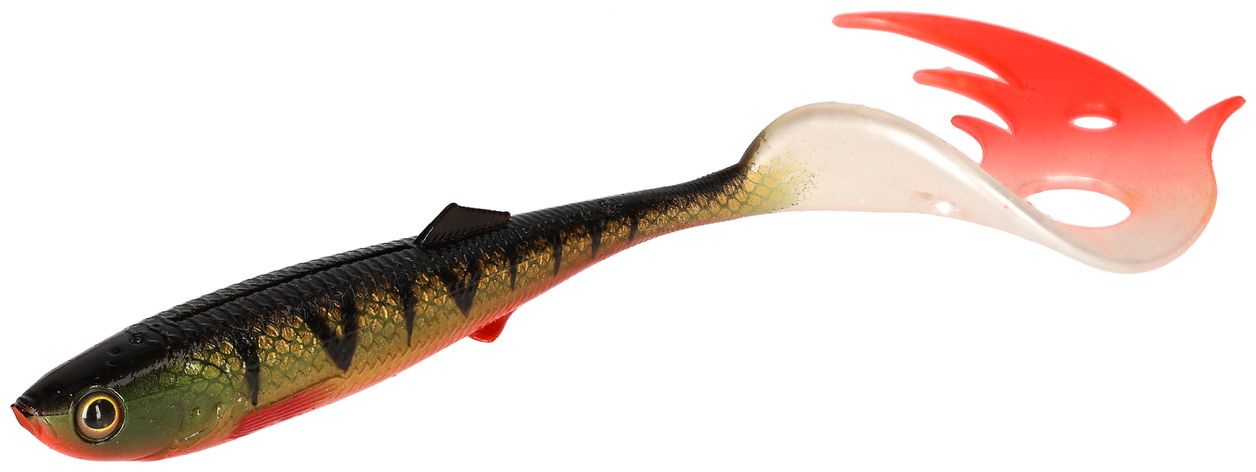 Specijalni oblik repa osigurava atraktivnu akciju i pri sporom vođenju, pa je učinkovit i u hladnijoj vodi ili tijekom opreznog griza. Savršeno radi pri vođenju na jig glavu ili čeburašku.
