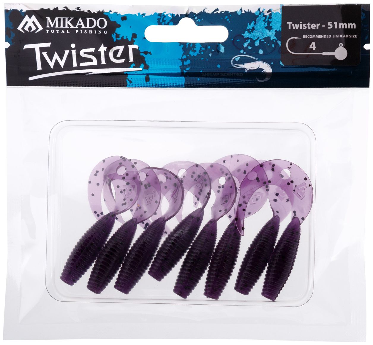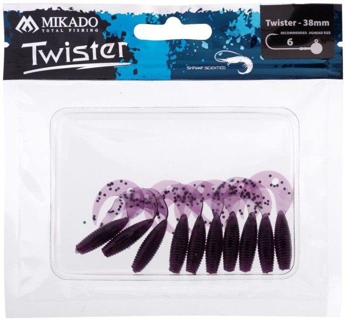 Idealni klasični twister marke Mikado u praktičnom pakiranju. Izuzetno atraktivna i učinkovita gumena mamac namijenjena za ribolov grdobina. Mamac je dizajniran da pri vođenju stvara izražene vibracije i pokret repa, koji privlače grdobine. Zbog svoje veličine i oblika stvara vrlo aktivan pokret u vodi, koji privlači štuke, bolene, smuđeve i druge predatore. Univerzalni mekani mamac s prirodnim pokretom u vodi, idealan za spinning.