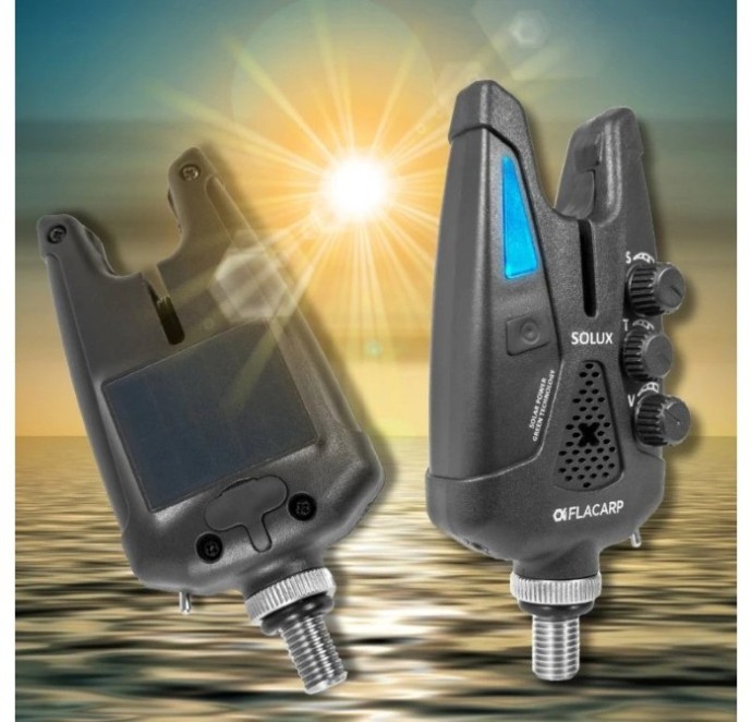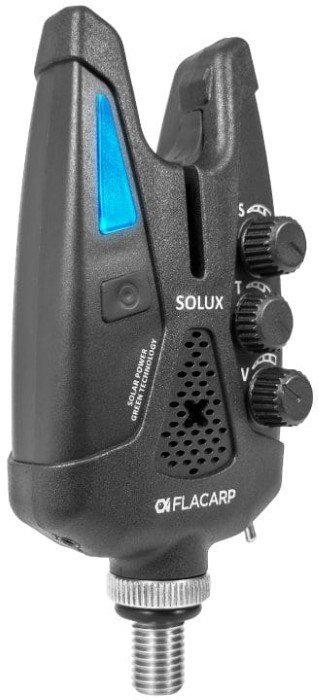 Signalizator zagriza FLACARP SOLUX sa solarnim punjenjem. Osvježeni dizajn i funkcije snažnog signalizatora s svim što ribar treba, uz integrirani solarni panel na stražnjoj strani. Zbog kvalitete i visoke učinkovitosti monokristalnog solarnog panela više nećete trebati obične baterije! Vaš signalizator će se kontinuirano puniti pomoću solarne energije. Jedan sunčani dan ga puni na mnogo tjedana do mjeseci rada. Osim toga, postoji mogućnost brzog punjenja i putem USB-C konektora (na primjer, nakon dužeg nekorisćenja). Signalizator FLACARP SOLUX, kao i vrhunski model FLACARP X8, opremljen je svim funkcijama, vrhunskim snimanjem pokreta ribolovne špule s premazom već od 1,5 mm s regulacijom do 15 cm i s zaštitom od lažnih alarma. Iznimno se ističe visokom mehaničkom otpornošću, snažnom optičkom LED signalizacijom i potpuno novim, poboljšanim zvučnikom za još bolju i ugodniju zvučnu signalizaciju zagriza. Visoku otpornost na zahtjevne vremenske uvjete osigurava set brtvila i kvalitetna obrada. FLACARP SOLUX bežično komunicira na velike udaljenosti s prijemnicima (prijemnicima) FLACARP, koji osim procjene zagriza omogućuju i daljinsko upravljanje LED svjetlima i povezivanje alarma.