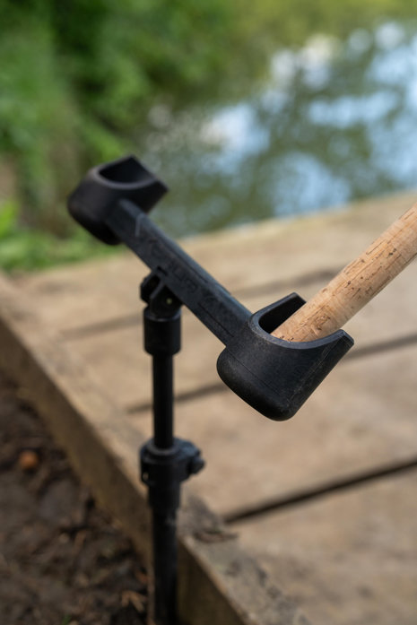 Jedinstvena konstrukcija s potporama butt cup ugrađenim u kutno podesivu prečku. Lako se podešava u različitim kutovima promjenom kuta i stegnutom u pravilan položaj. Idealno za ribolov s štapovima okrenutim prema gore, kako bi se monofilament odmah ne spuštao u vodu. Vrlo sigurno drži štap u zadanom položaju. Može se koristiti s stalkovima, riječnim tripodima ili vilicama. Dolazi s gumenom zaštitnom podloškom i drenažnim otvorima. Snažna mjedenja navoj.