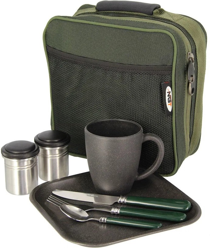 Set sadrži sve što vam je potrebno za ugodno objedovanje tijekom ribolova ili kampiranja.