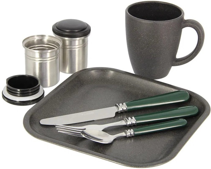 Praktični set posuđa za jednu osobu – idealan za duža solo putovanja uz vodu ili u prirodu.