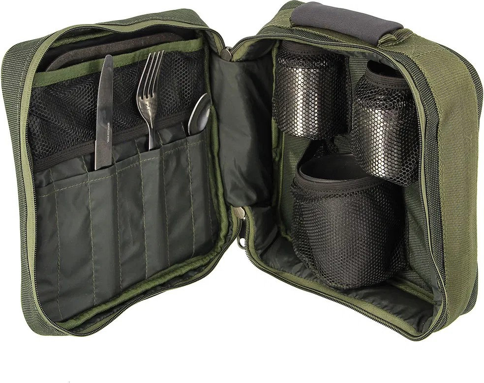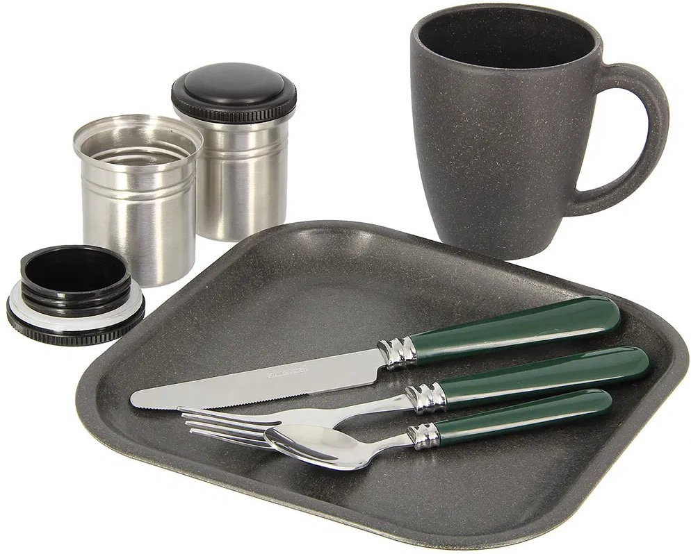 Set sadrži sve što vam je potrebno za ugodno objedovanje tijekom ribolova ili kampiranja.