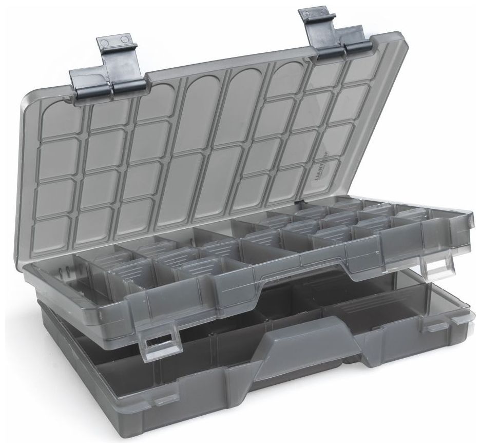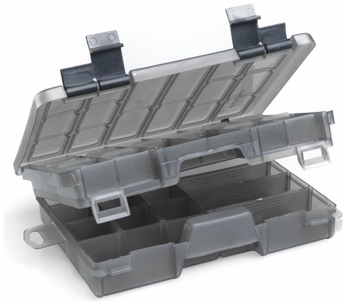 Vrlo praktična kutija za mamce i ribolovni pribor. U dvostranoj kutiji možete smjestiti mnoge sitnice, od udica preko olova do guma. Izvadive pregrade omogućuju organizaciju prostora prema vašim potrebama. Zbog prozirnog materijala sve ćete vidjeti i nećete morati komplicirano tražiti potrebne stvari.