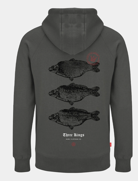 Naša hoodie 3 Kings ručno je napravljena tehnikom poznatom kao „pointilizam“, koja koristi milijune sitnih točaka za stvaranje svijetlih i tamnih površina. Oslavljamo 3 vrste kraljevskih šarana, koje svi lovimo. Trobojnosni sitotisak na super mekanom organskom materijalu gramature 320 g u boji „šljiva siva“ s tkanim bočnim oklopima.