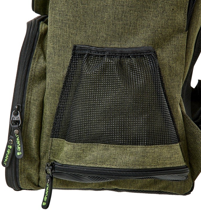 Ruksak za ljubitelje ribolova na umjetne mamce, koji traže savršenu mobilnost prilikom ribolova. Ruksak je opremljen s dvije glavne komore sa zipom. Donja veća komora dodatno sadrži 3 kutije za mamce. Na vanjskoj strani nalazimo dvije držače štapova, džep za piće, manji džep za sitnice sa zipom i nekoliko prstenova za pričvršćivanje dodatne opreme. Zahvaljujući ergonomskom obliku savršeno sjedi na leđima, a udobnost osiguravaju podstavljene ojačanja i široke naramenice, koje su dodatno osigurane podesivim prsnim trakama. Ruksak je dizajniran za duže ture i pruža pouzdanu potporu i udobnost. Čvrsta izdržljiva tkanina je dopunjena kvalitetnim zipovima. Sve to u Gunki dizajnu.