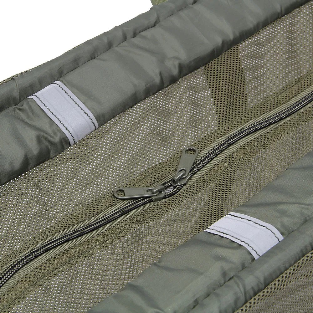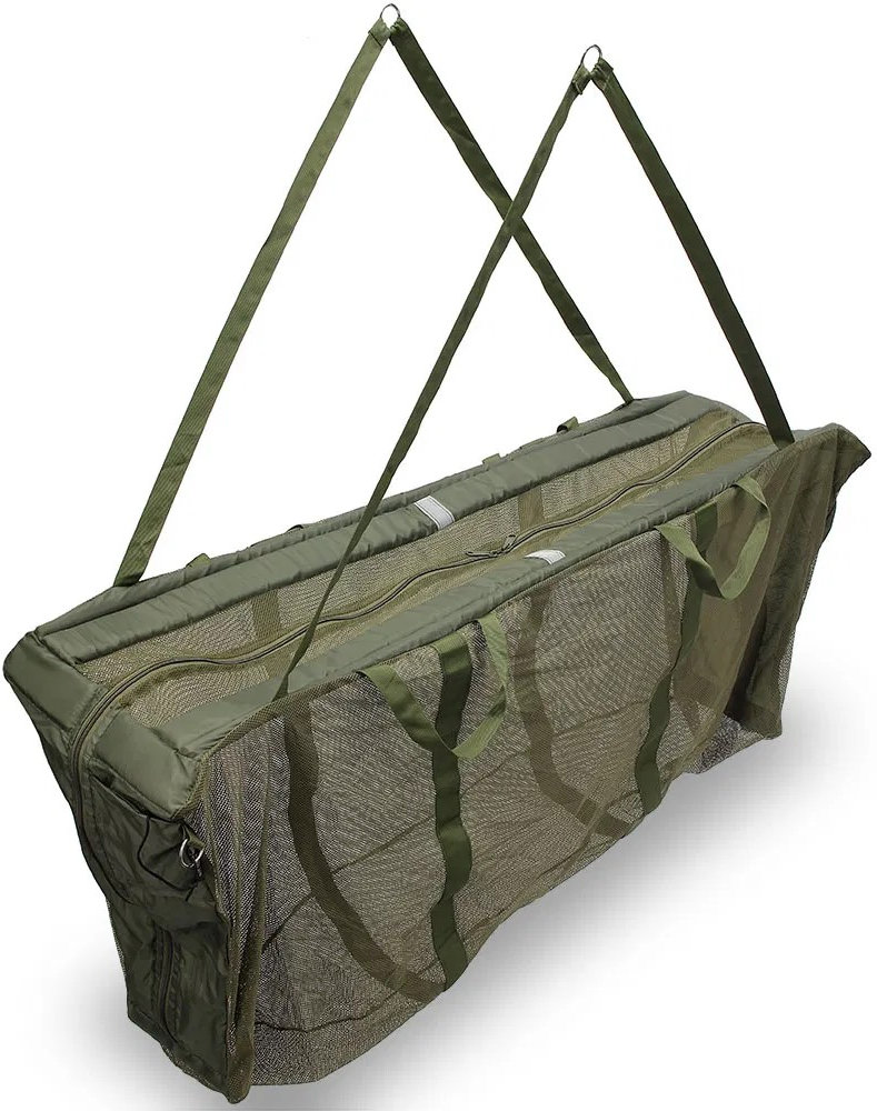 Fine mrežice nježne prema ribama omogućuju brzi odvod vode, a u isto vrijeme štite ribu prilikom rukovanja. Zahvaljujući četiri ručke, vreću je lako prenositi jednom ili s dvije osobe, a reflektirajuće trakice osiguravaju vidljivost čak i pri smanjenoj svjetlosti. Za udobno va weighing služe dva čvrsta remena, a sve možete lako pohraniti u praktičnu transportnu torbu koja dolazi u paketu.