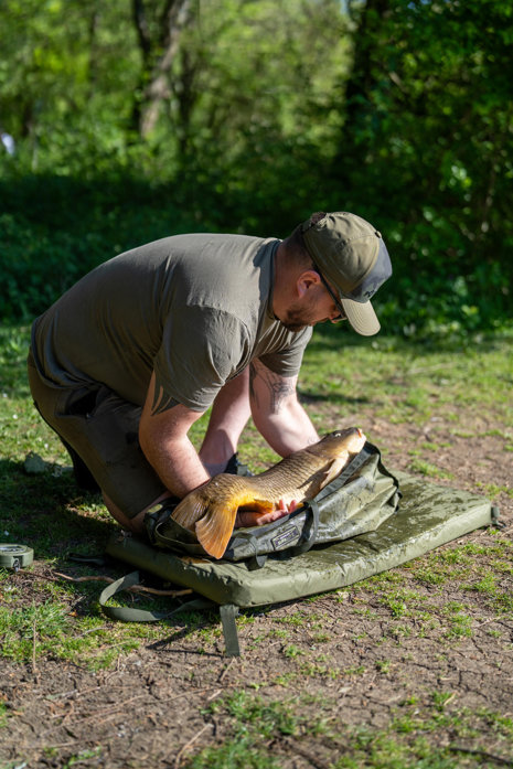 Kompletna oprema za njegu riba namijenjena mobilnim ribolovcima. Koristi našu tkaninu Supa Lite Flex 150DPU s bogato podstavljenom podlogom na sklopivoj podlozi, koju je lako učvrstiti na sve Korum ruksake pomoću dviju D petlji. Na stražnjoj strani podloge nalazi se vaga, uredno pohranjena u maloj kutiji. Ova kutija je dimenzijski prilagođena tako da može primiti i vage Korum. Podloga se sigurno zakopča i dolazi s ugrađenom drškom za nošenje.