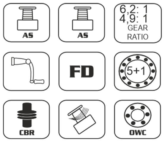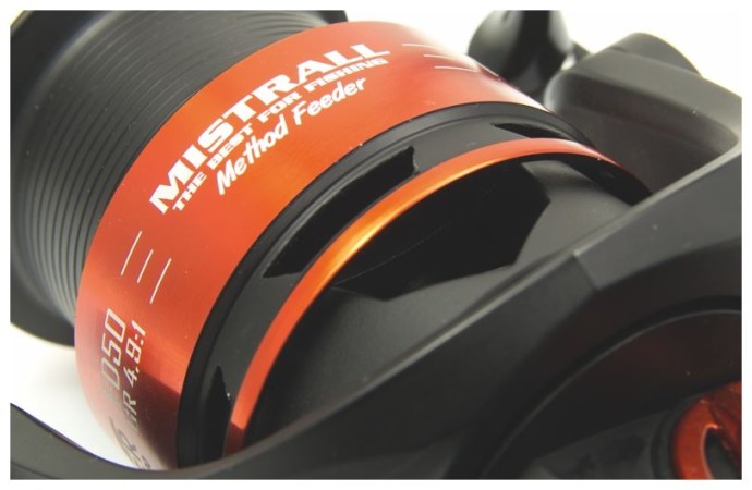 Role napravljača izrađena od laganih legura, opremljena s pet kugličnih ležajeva plus jednim jednokrevetnim ležajem, aluminijskom špulom, preciznom stražnjom kočnicom smještenom u prednjem dijelu tijela, aluminijskom ručicom i ojačanim zupčanikom. Preporučuje se za feeder tehniku. U pakiranju dvije aluminijske špule.