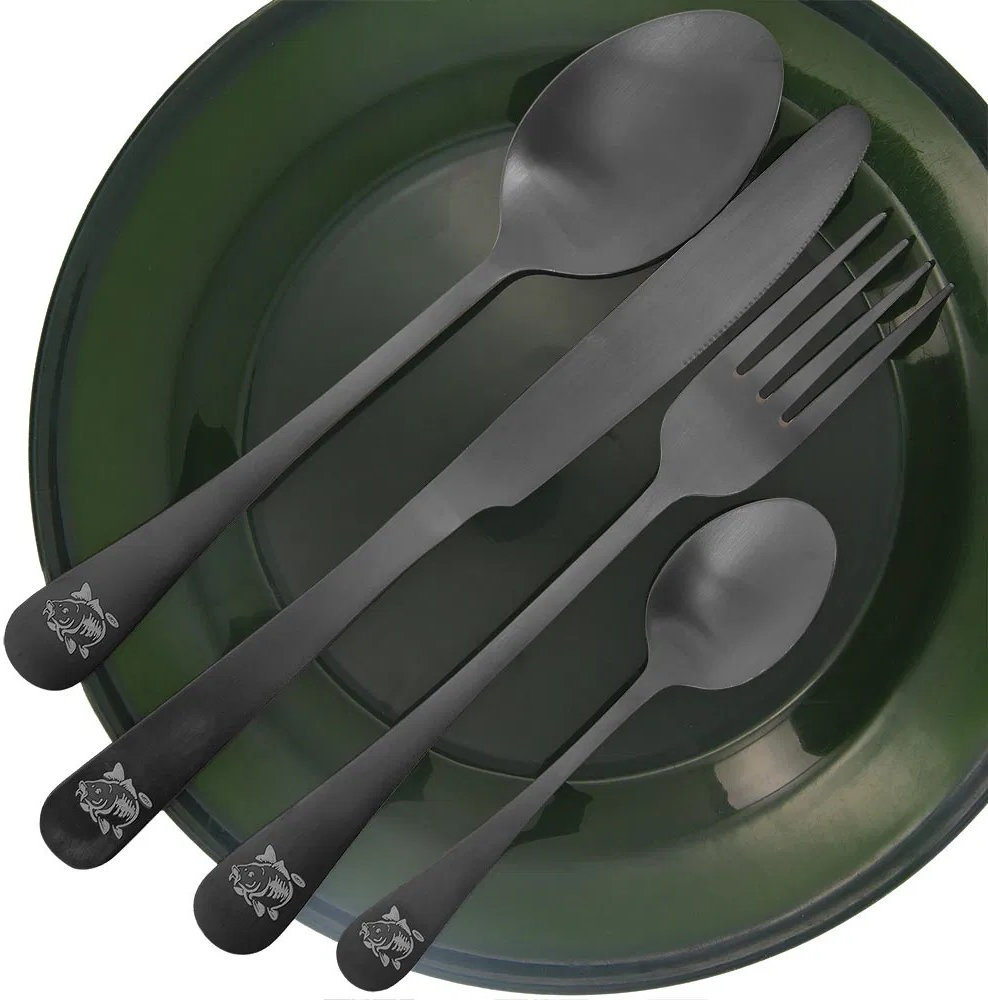Elegantan i praktičan set pribora za ribolov, koji kombinira izdržljivost, udobnost i moderni dizajn. Svaki komad je izrađen od nehrđajućeg čelika s mat površinom pogodnom za hranu i ukrašen logom šarana, što će cijeniti svaki ribolovac.
