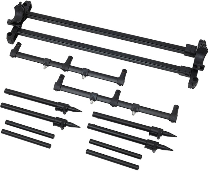 Stalak s dvostrukom središnjom konstrukcijom, koji nudi stabilnost i funkcionalnost koja je obično viđena samo kod premium stalaka viših cjenovnih razreda. Ističe se odličnim omjerom cijena/performanse, potpuno je prilagodljiv – kako po dužini, tako i po visini – a sve prečke imaju podešive sigurnosne prstene, kojima se precizno može učvrstiti alarmi i rohatinke u traženi položaj. Stalak dolazi u vlastitoj podstavljenoj transportnoj torbi.