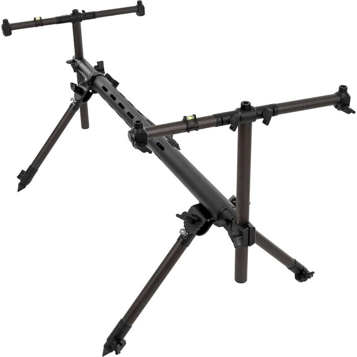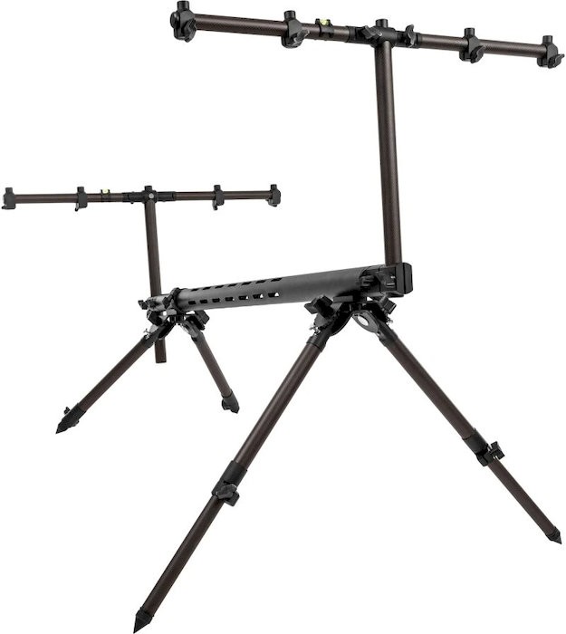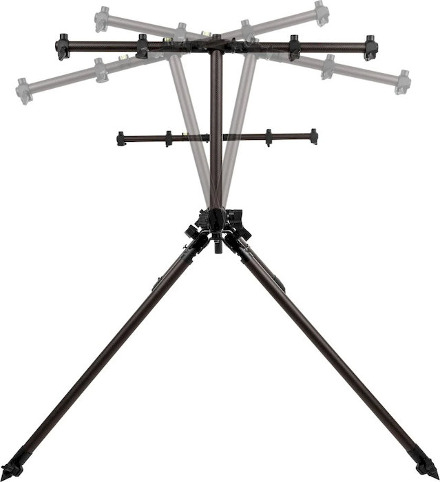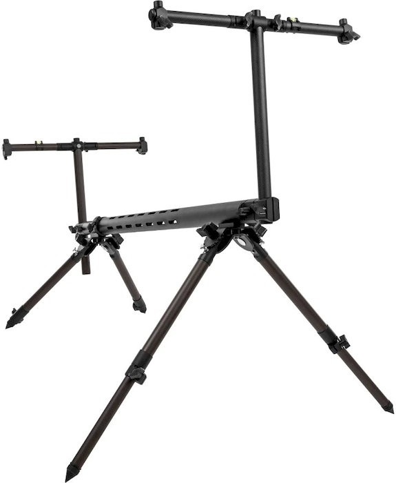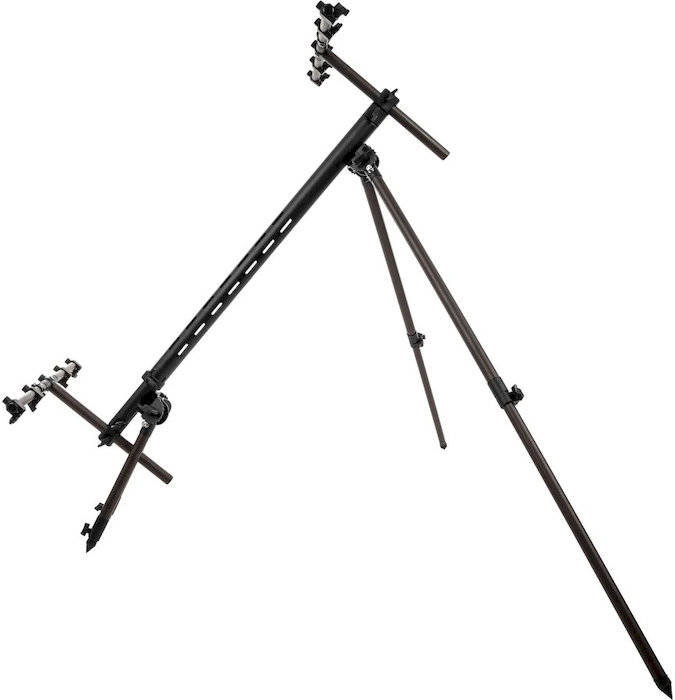 Noge rodpoda s 11 kutnih pozicija pružaju maksimalnu varijabilnost i omogućuju preciznije prilagođavanje terenu. Nagibni nosač s spojem omogućuje nagib od pola osi, tako da ribar može štapove postaviti udobnije i preciznije prema terenu ili smjeru udarca.