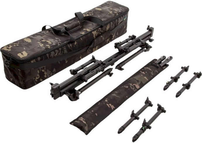 Rodpod Xtreme uključuje nosače za 2–3 štapa (nosač x3), 4× kratke teleskopske noge i transportnu kamuflažnu torbu za rodpod. RodPod Xtreme + dodatno sadrži nosač za 4–5 štapova (nosač x5) i 2× duge teleskopske noge.