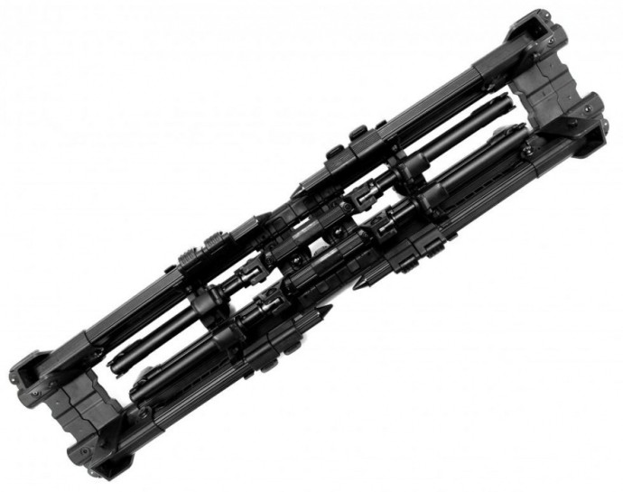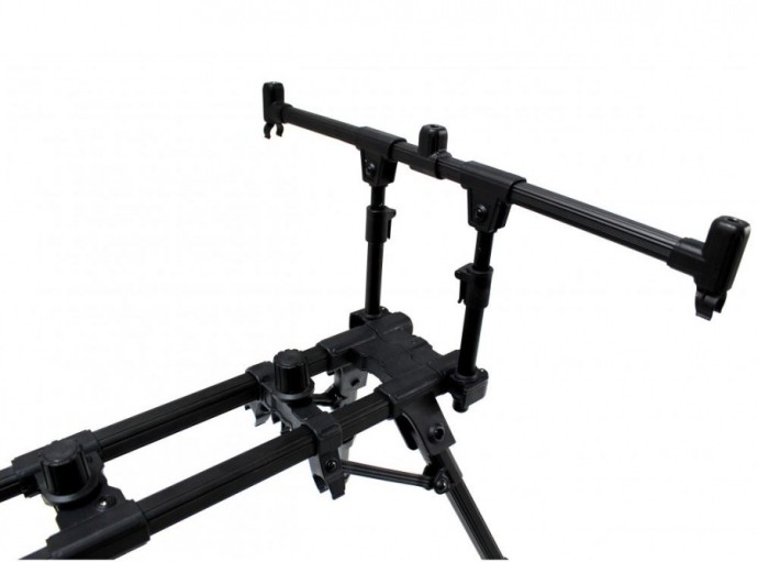 Celi stalak, uključujući prečke, može se sklopiti u jedan celovit komad. Široka prečka omogućava udobno postavljanje do 3 štapa s velikim ribolovnim rolama, poput našeg Hulk BT 9000. Naravno, tu je i podešavanje visine prečki i teleskopskih nogu.