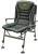 Masivna fotelja čvrste konstrukcije s naslonima za ruke, obložena čvrstim, izdržljivim, ali istovremeno udobnim materijalom s pjenastim punjenjem. Stražnje naslonjalo može se nagnuti u širokom rasponu postavki putem čvrstih i izdržljivih brzih kopči, slično kao teleskopski podesive noge na kojima su postavljene široke baze protiv zanošenja u mekano tlo. Zahvaljujući teleskopski podesivim nogama, niti terenske neravnoteže neće omesti naše udobno i sigurno sjedenje.