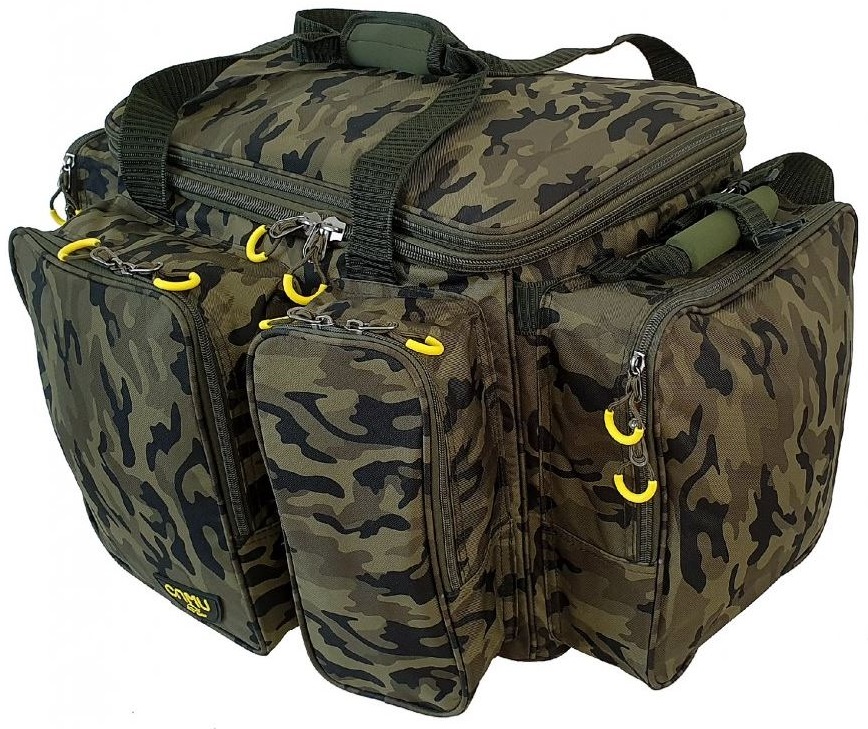 Zahvaljujući pametno ugrađenom zipu, glavni prostor se može povećati za dodatnih 10 cm. Torba također ima slobodnu platformu za mamce i slično. Platforma se može pričvrstiti karabinama za gornji dio torbe. Ova torba ima dvije ručke za nošenje i podstavljen remen preko ramena, kao i dvije specijalne ručke za lakšu manipulaciju - spremanje u auto, nošenje u paru itd.