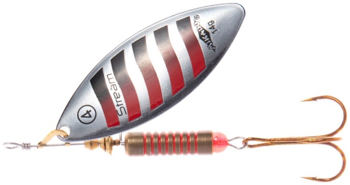 Rotacijska varalica Mikado Stream s krilcem u obliku vrbovog lista. Radi blizu tijela pod kutom od približno 30° i vjerno imitira usku ribu ili insekt. Zbog svog oblika pogodna je za vođenje pri dnu u dubokim i dubljim vodama; na rijekama se preporučuje vođenje protiv struje, gdje varalica bolje radi.