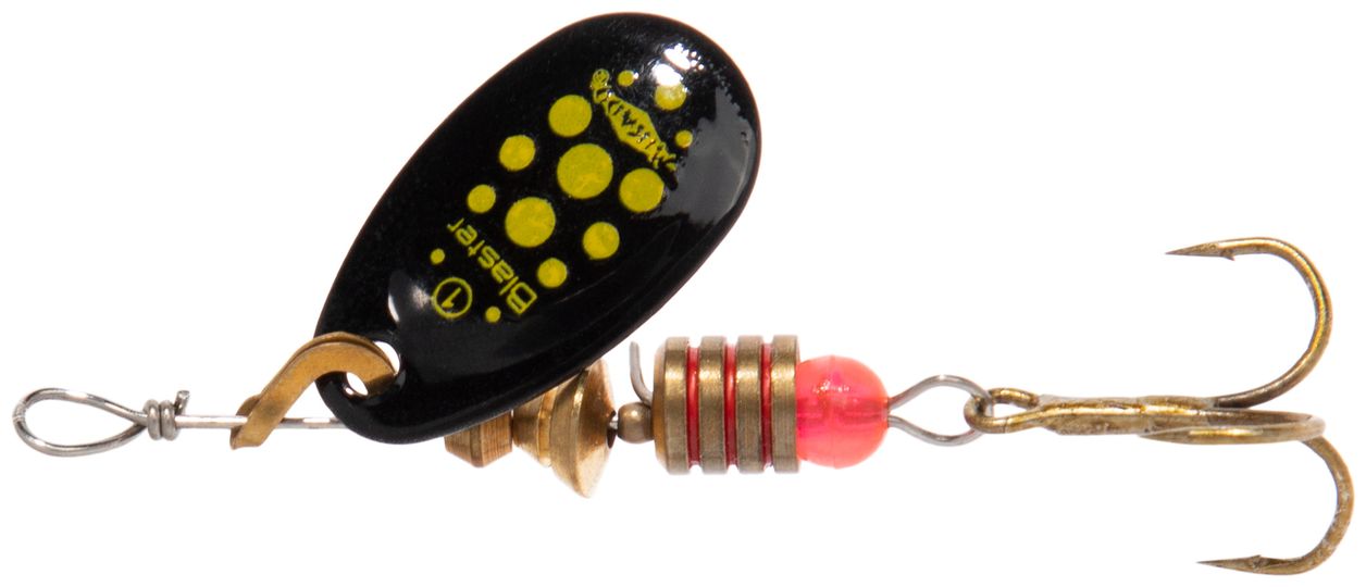 Rotacijska muška Mikado Blaster radi pod kutom od približno 45 stupnjeva i spada među univerzalne muhe preporučene za sve vrste voda. Zahvaljujući svom obliku i izvedbi stvara atraktivne odbljeske i vibracije, koje pouzdano privlače pažnju grabežljivih riba.