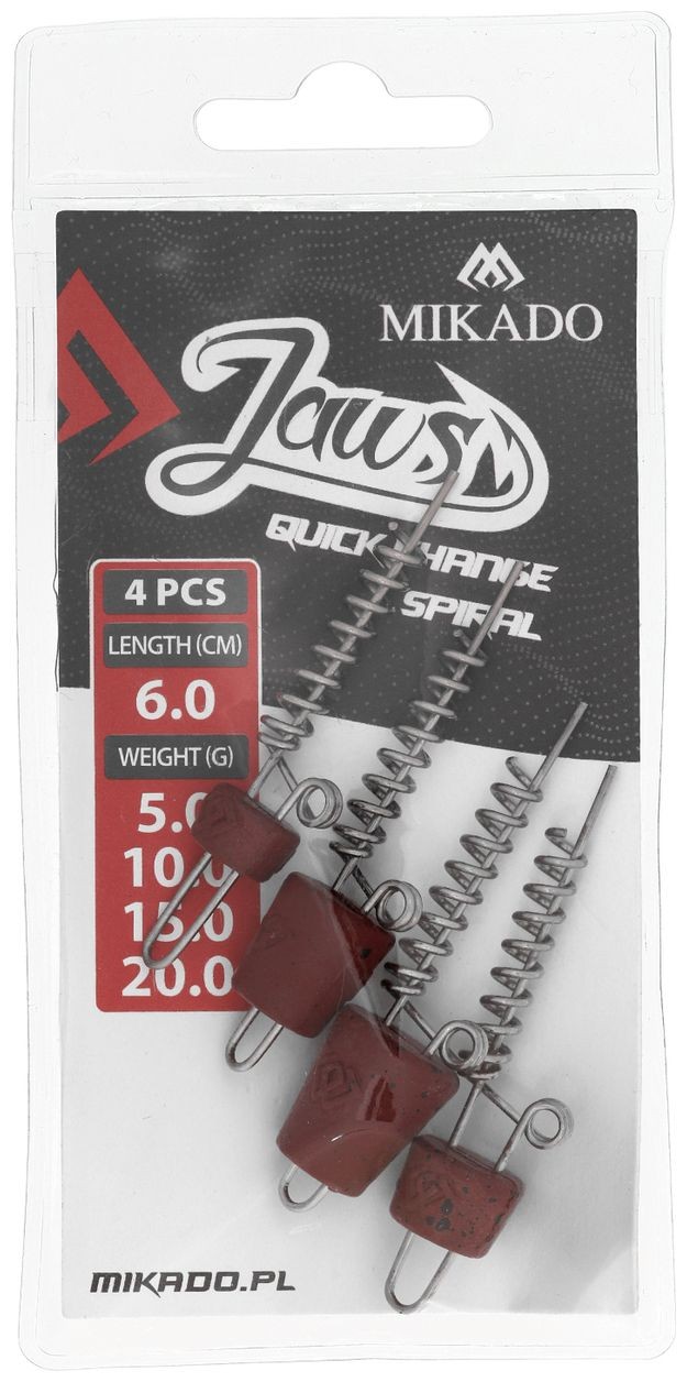 Spirala Jaws Quick Change Spiral namijenjena je za mekane mamce i omogućuje brzu i jednostavnu promjenu težine bez potrebe za vađenjem spirale iz mamca. Zahvaljujući tome, guma ostaje neoštećena čak i prilikom čestih promjena težine. Inovativni sustav Quick Change omogućuje mijenjanje gramaže bez oštećenja mamca, što će cijeniti ribolovci na varku koji često prilagođavaju težinu prema uvjetima.